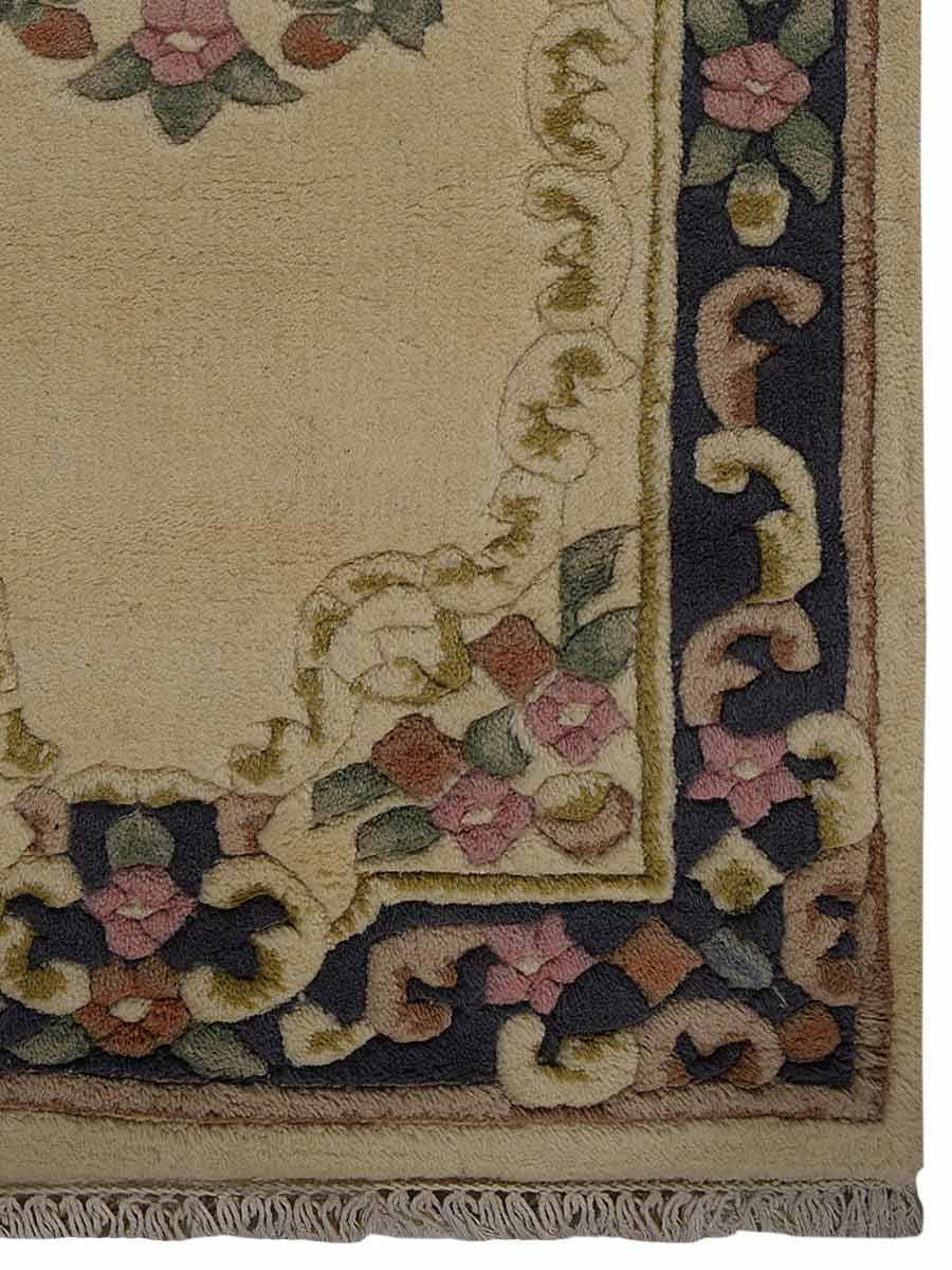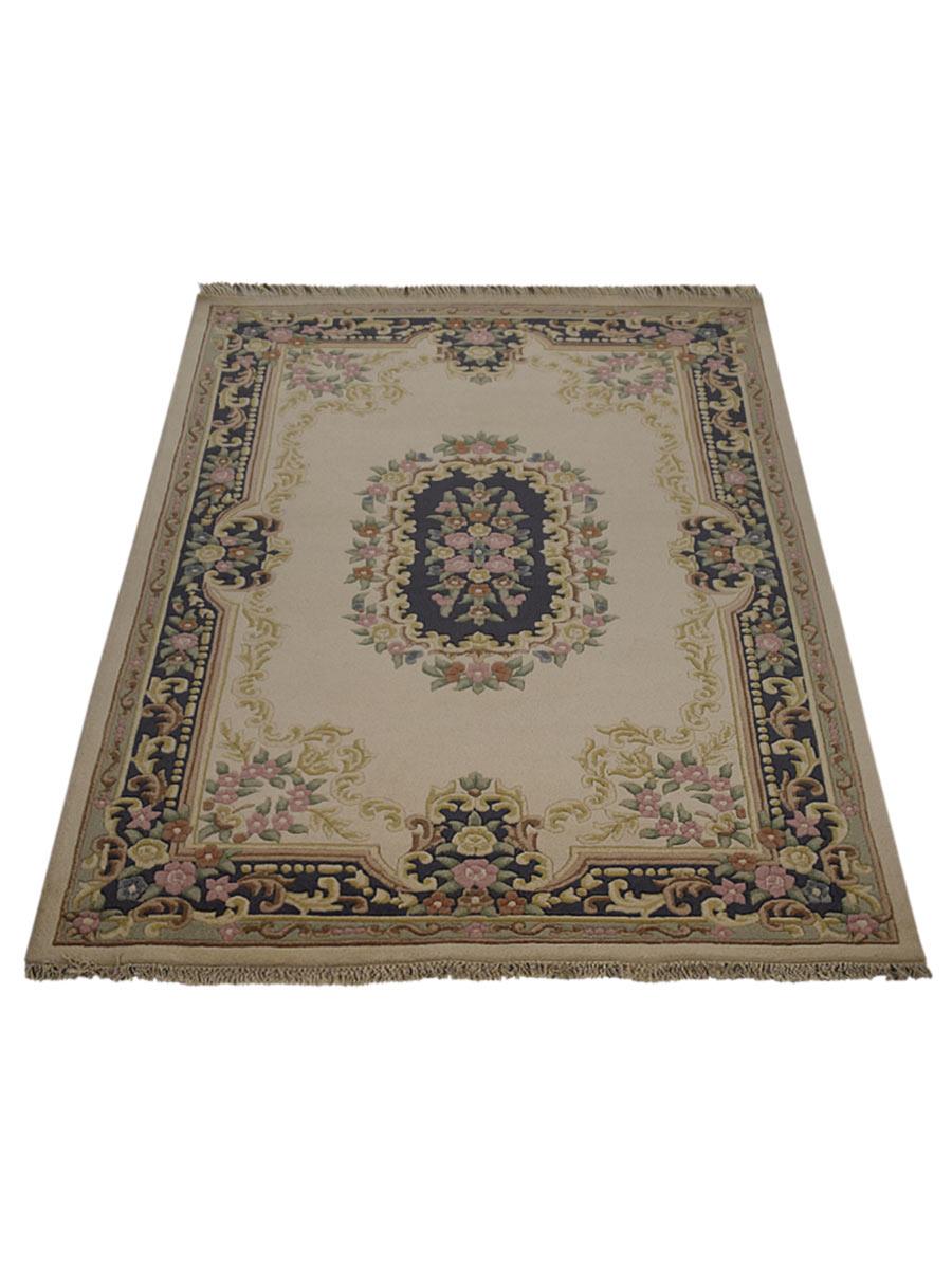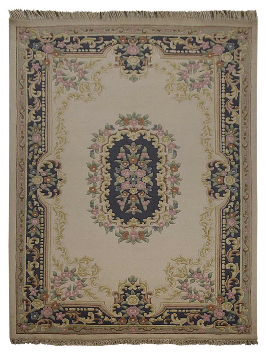 OPS Hand Knotted Aras Wool Oriental Indoor Area Rug, Ivory Blue
