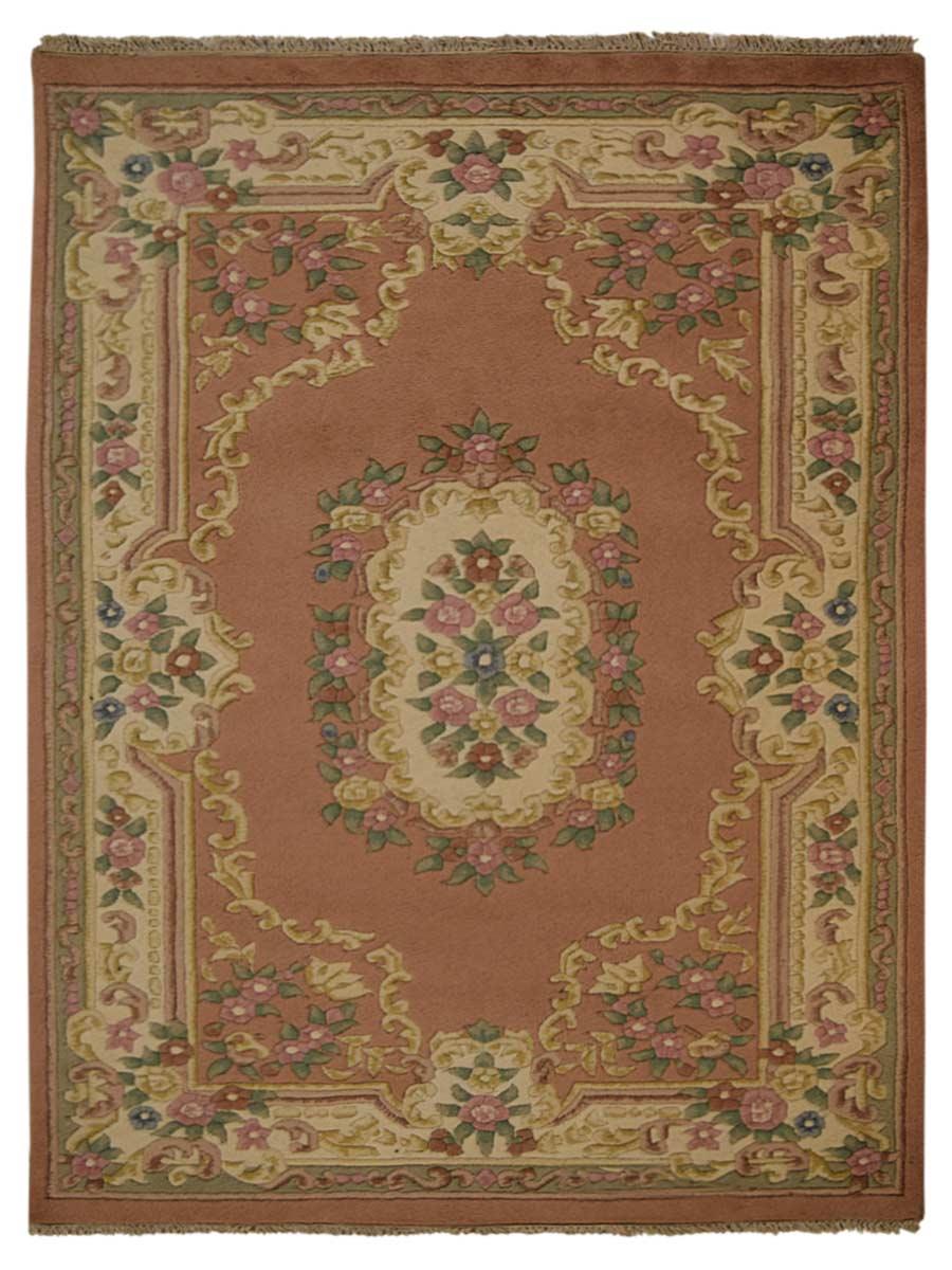 OPS Hand Knotted Aras Wool Oriental Indoor Area Rug, Rose Cream