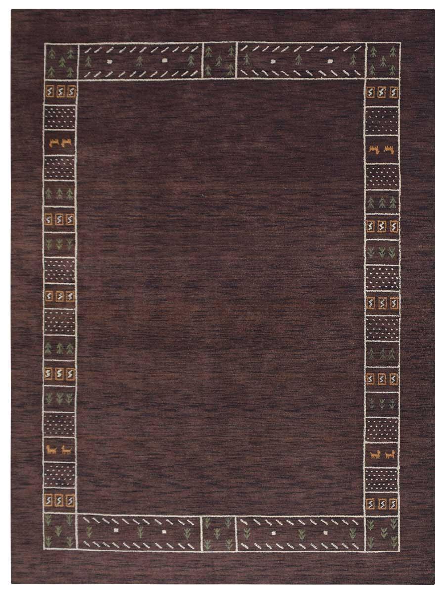 OPS Hand Knotted Gabbeh Wool Contemporary Indoor Area Rug, Brown