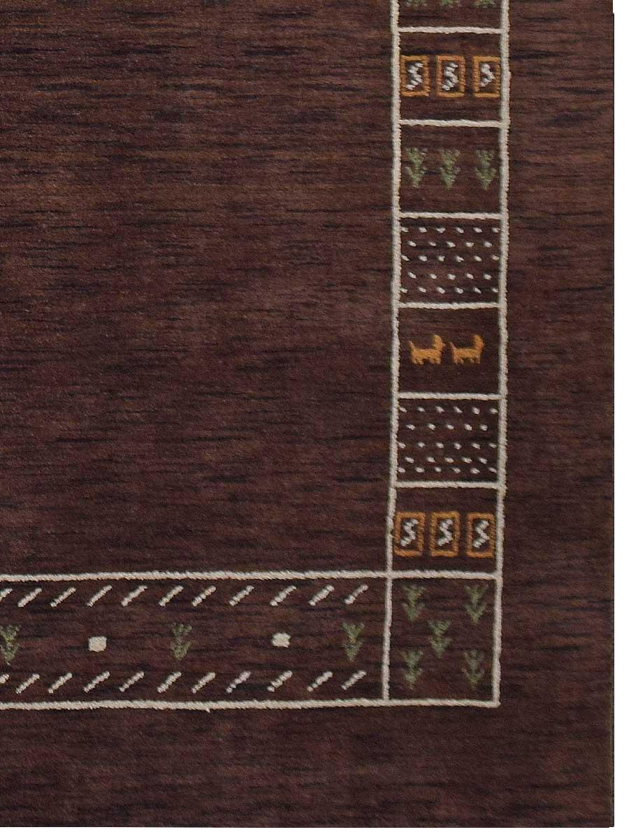 One Pixie Street brings to your homes from our exclusive collection this wool rug it's rectangular shape in contemporary pattern. This hand knotted gabbeh brown color rug would add a elegance in your homes