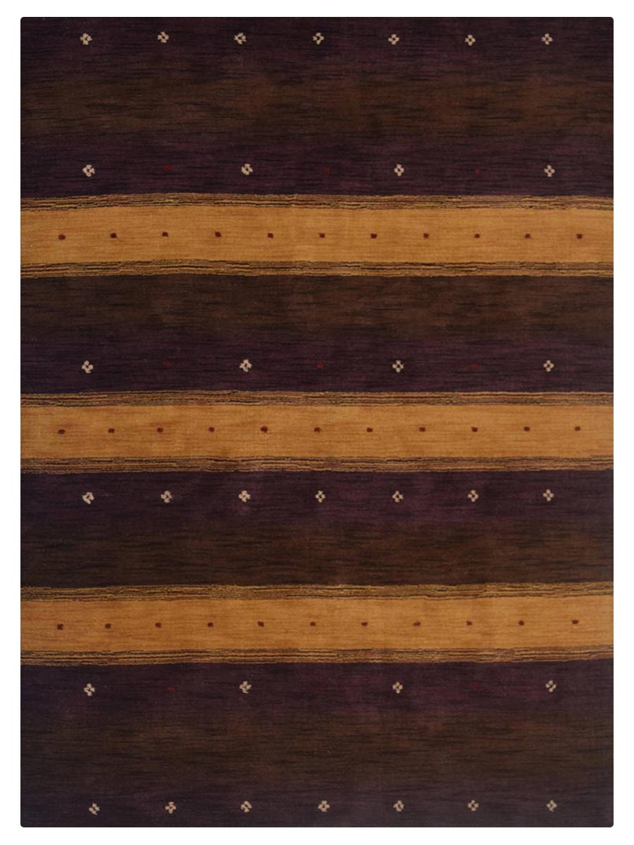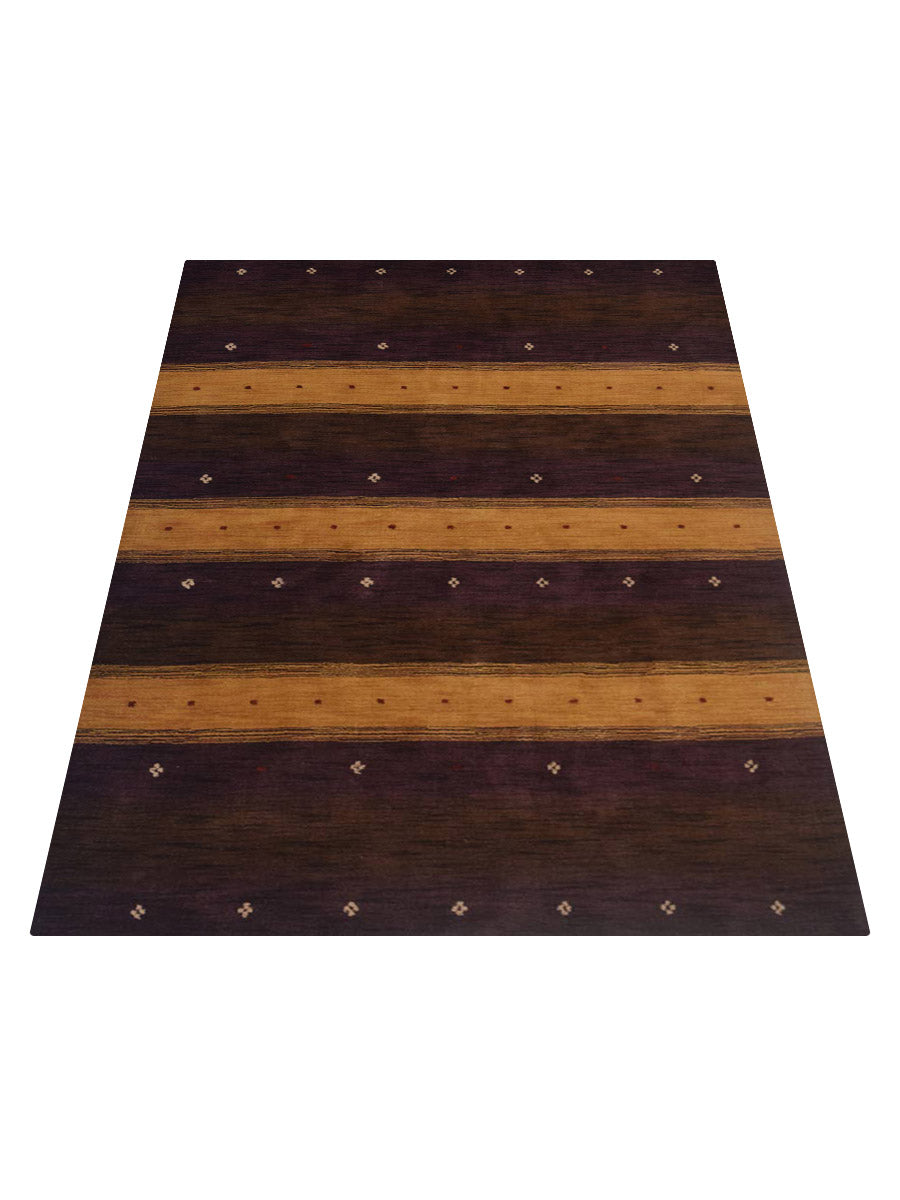 Best in class hand knotted gabbeh rug with a soft wool material that gives your lifestyle a new and enhancing look. Hand made rectangular contemporary pattern specially designed for your interior in dark brown gold Color