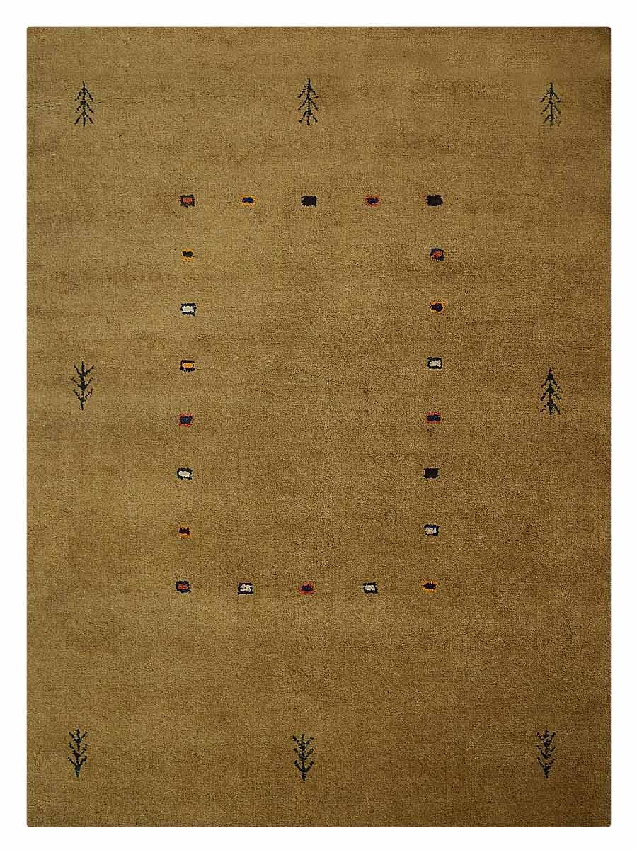 OPS Hand Knotted Gabbeh Wool Contemporary Indoor Area Rug, Gold