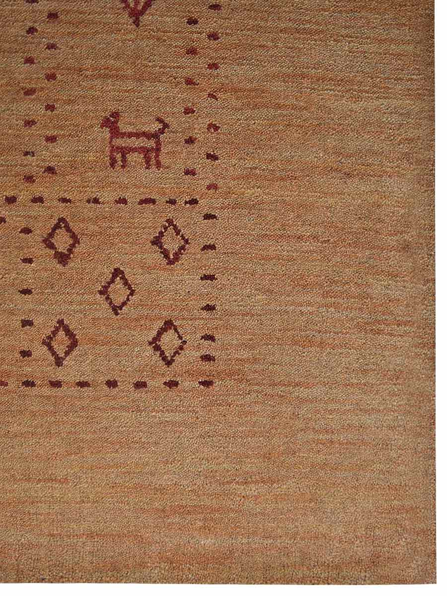 OPS Hand Knotted Gabbeh Wool Contemporary Indoor Area Rug, Gold