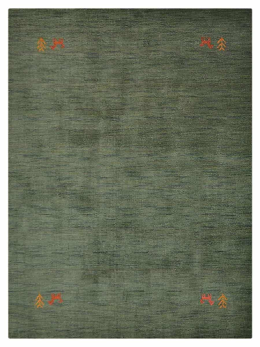 OPS Hand Knotted Gabbeh Wool Contemporary Indoor Area Rug, Green