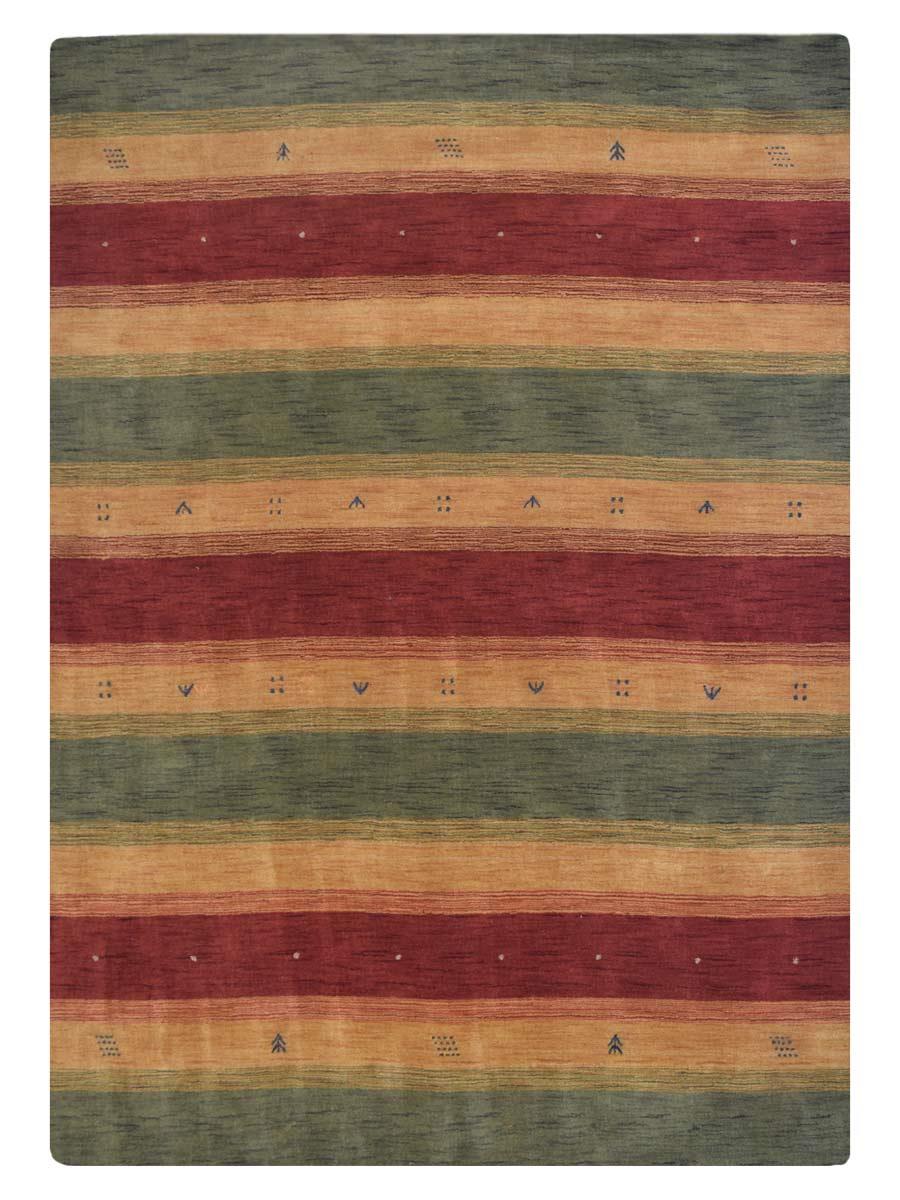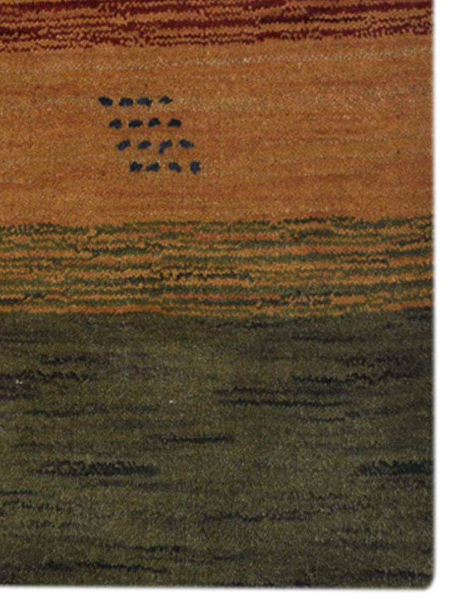 OPS Hand Knotted Gabbeh Wool Contemporary Indoor Area Rug, Green Gold