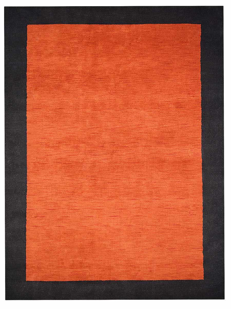 OPS Hand Knotted Gabbeh Wool Contemporary Indoor Area Rug, Orange Black