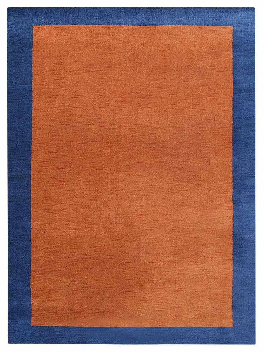 OPS Hand Knotted Gabbeh Wool Contemporary Indoor Area Rug, Orange Blue
