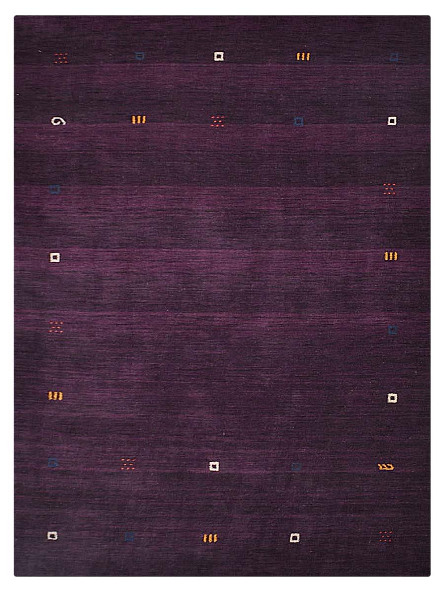 Special soft feel rug with rich hand knotted gabbeh rectangular contemporary pattern, with a mixture of beautiful purple color makes it more special. It has globally inspired dimension Of 5'7"x7'10" and an easy to place shape