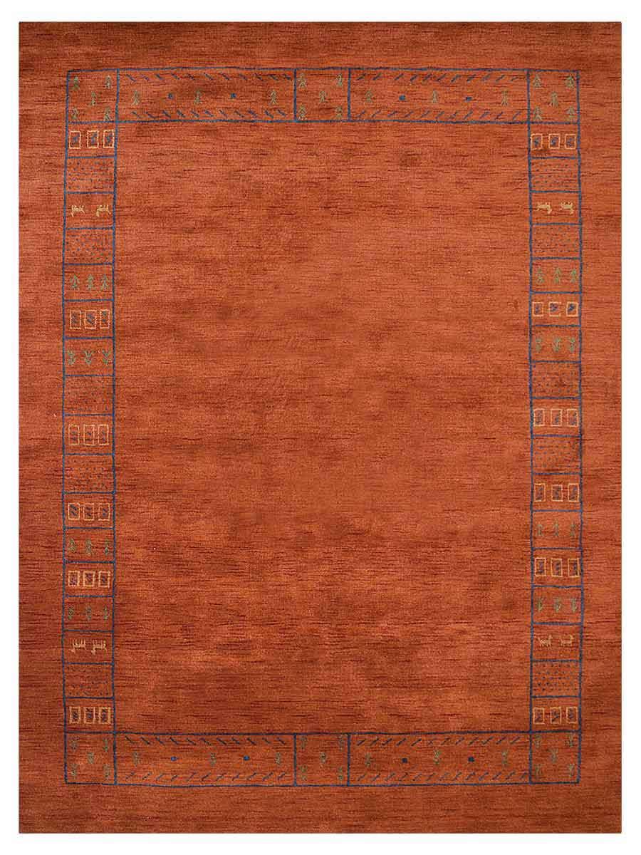 OPS Hand Knotted Gabbeh Wool Contemporary Indoor Area Rug, Rust