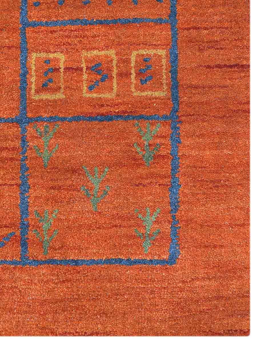 Hand knotted gabbeh indoor area rug from the house of One Pixie Street. This rectangular shape contemporary pattern design will add a touch of rust color in indoor spaces. Wool rugs are a masterpiece on their own.