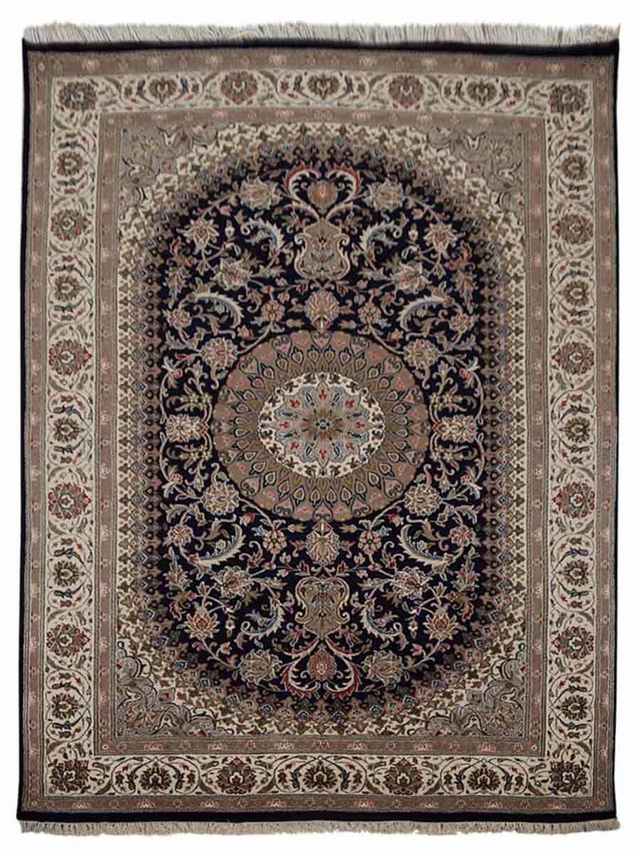 OPS Hand Knotted Isfahan Wool Oriental Indoor Area Rug, Blue