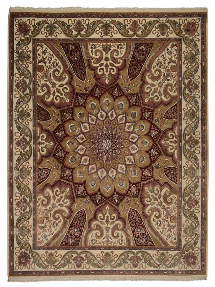 OPS Hand Knotted Isfahan Wool Oriental Indoor Area Rug, Cream