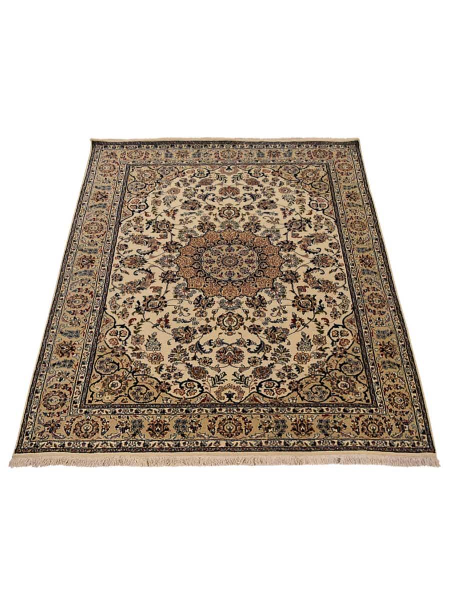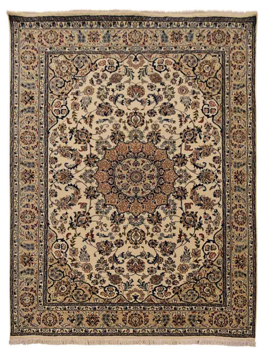 OPS Hand Knotted Isfahan Wool Oriental Indoor Area Rug, Cream