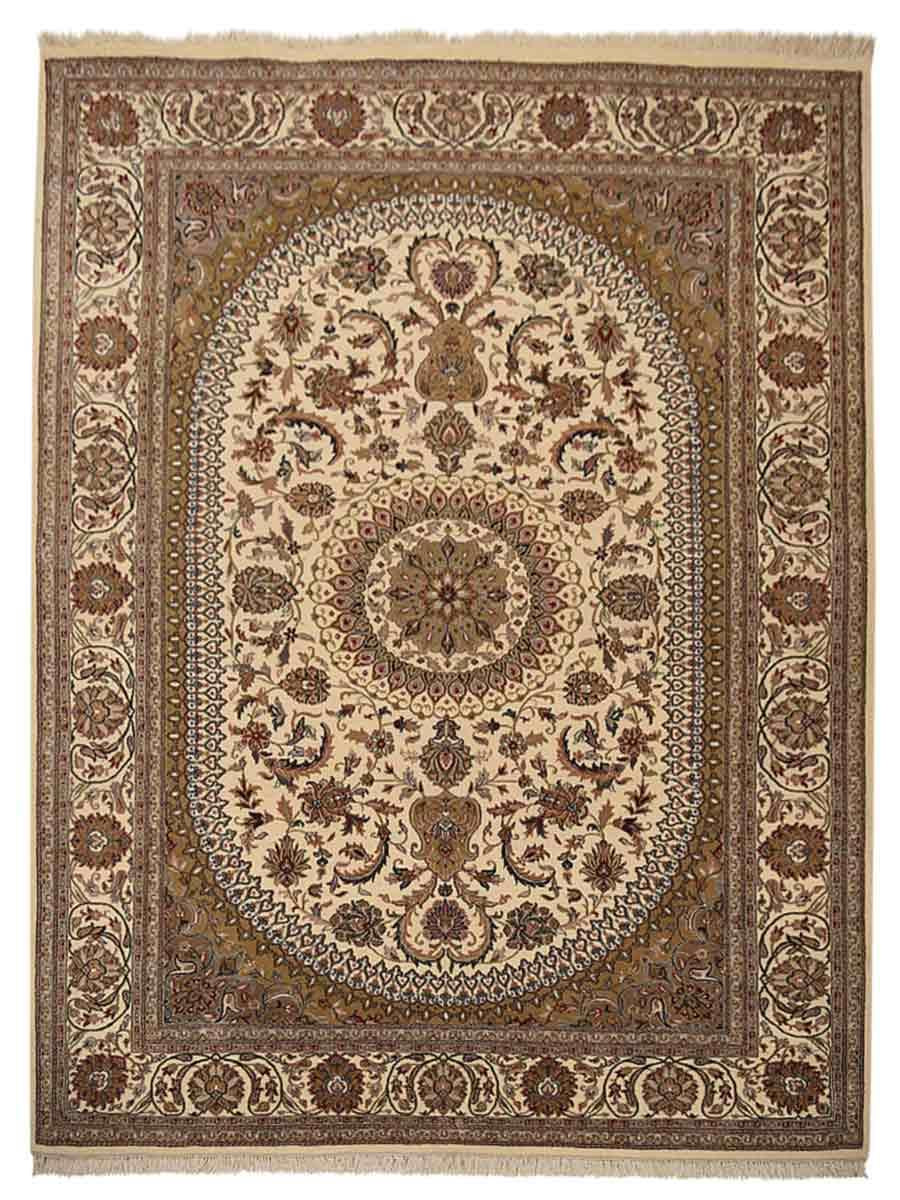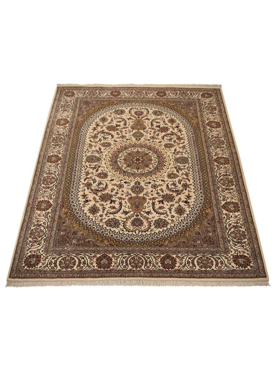 OPS Hand Knotted Isfahan Wool Oriental Indoor Area Rug, Cream