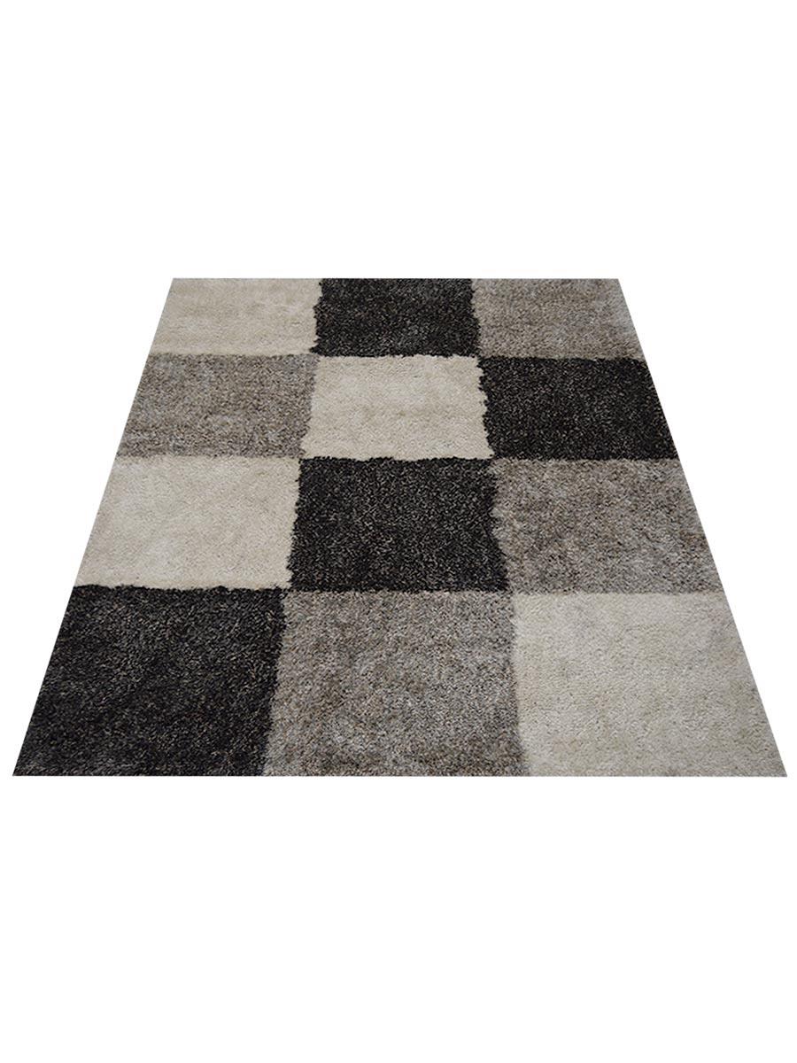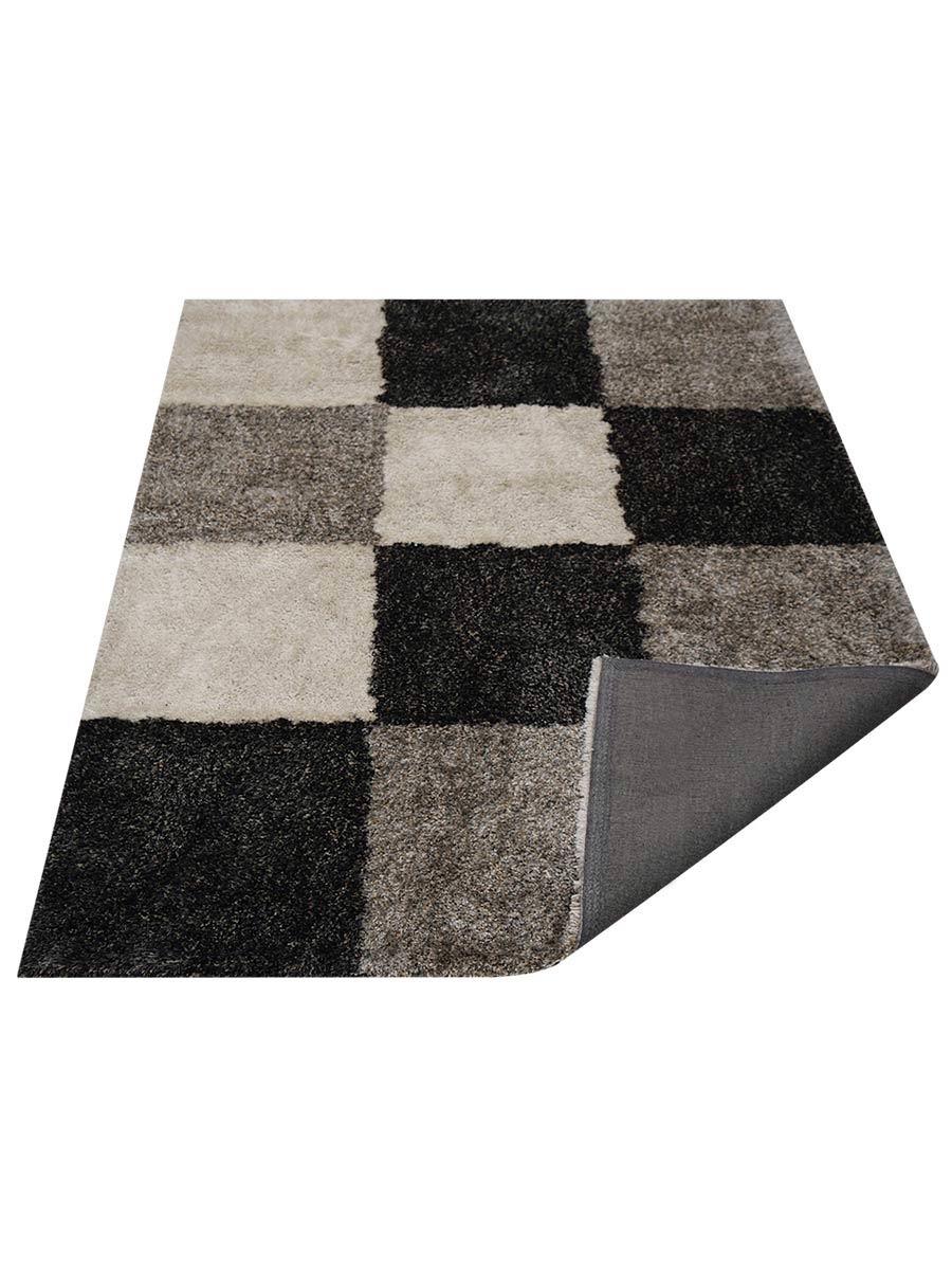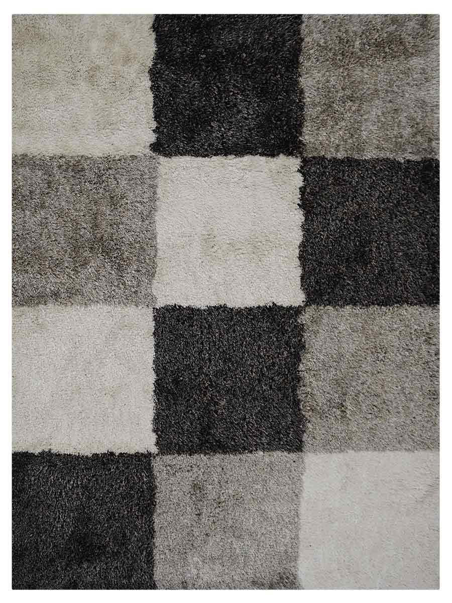 OPS Hand Tufted Shag Polyester Geometric Indoor Area Rug, Black Silver