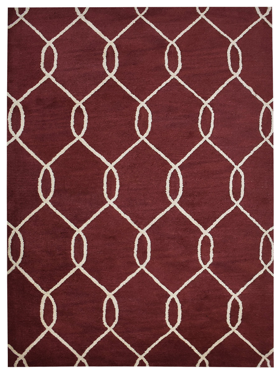 OPS Hand Tufted Wool Contemporary Indoor Area Rug, Red Beige