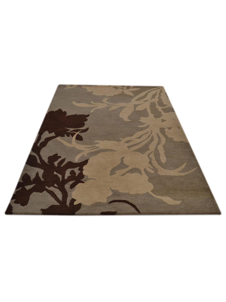 OPS Hand Tufted Wool Floral Indoor Area Rug, Gray White