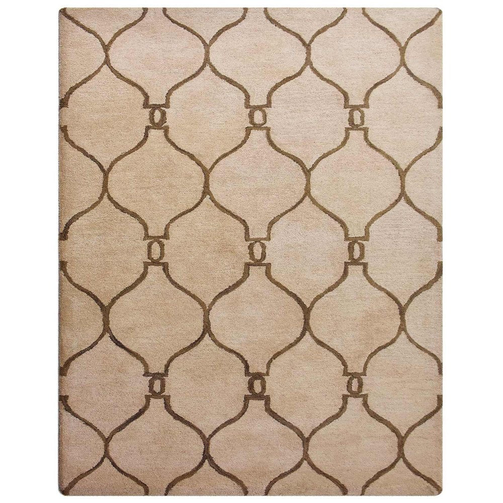 OPS Hand Tufted Wool Geometric Indoor Area Rug, Beige Brown