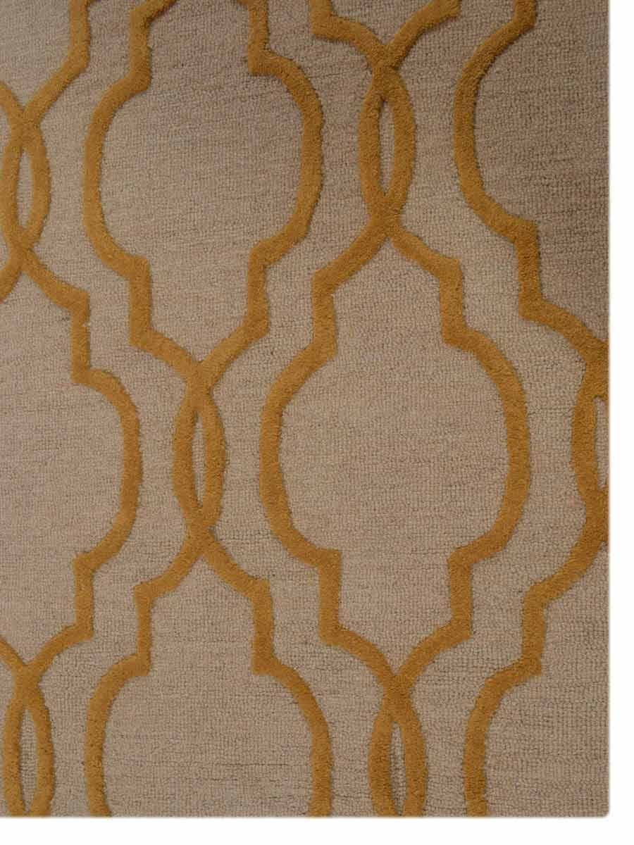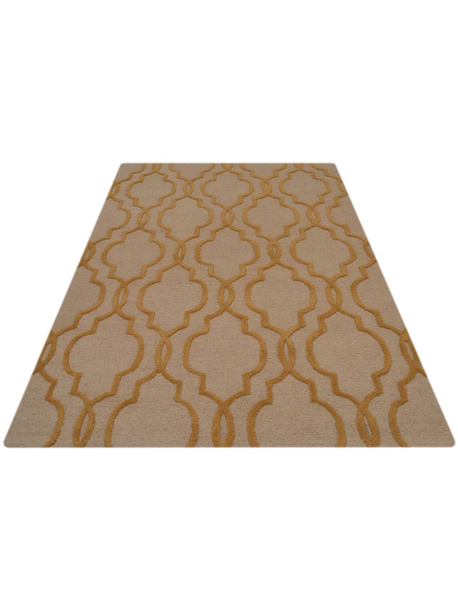 OPS Hand Tufted Wool Geometric Indoor Area Rug, Beige Gold