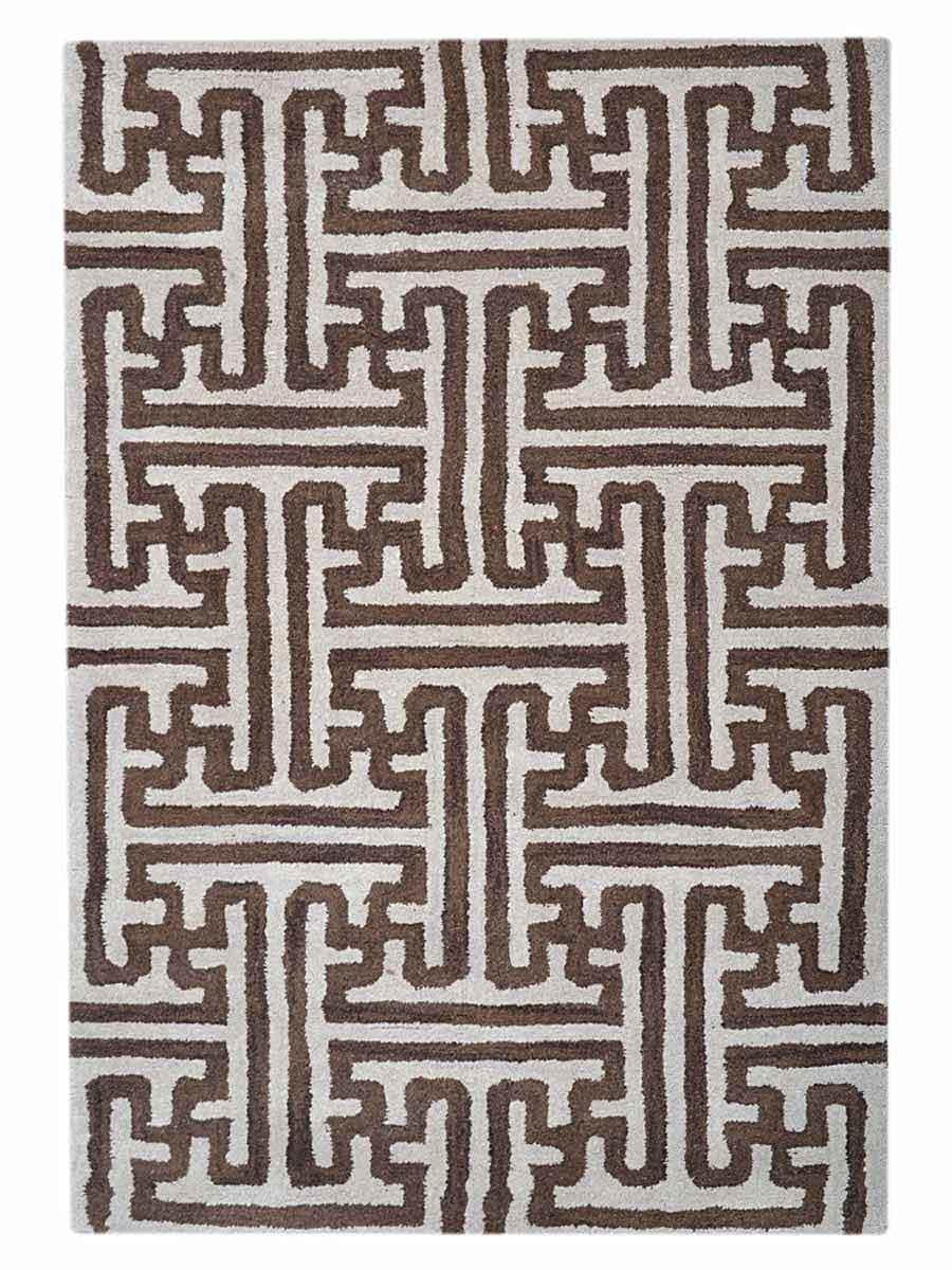OPS Hand Tufted Wool Geometric Indoor Area Rug, Cream Brown