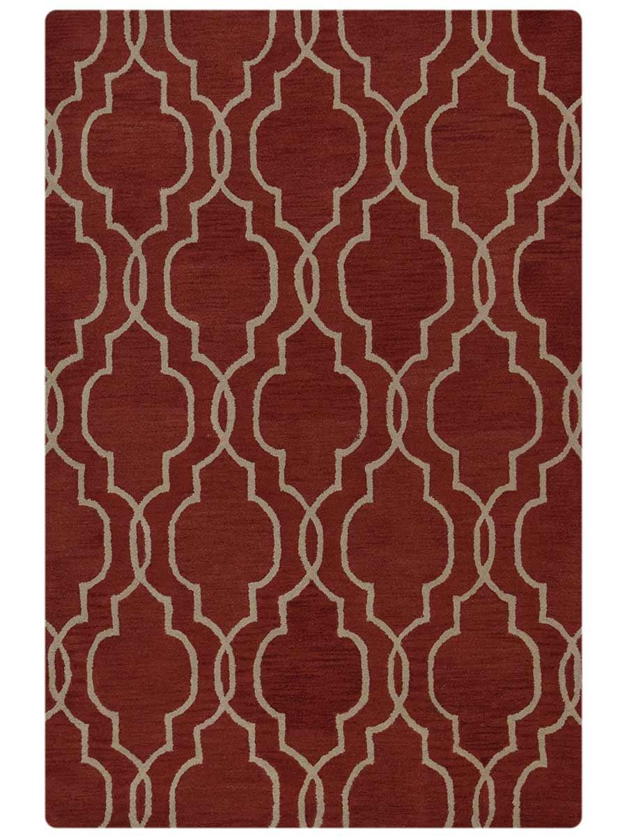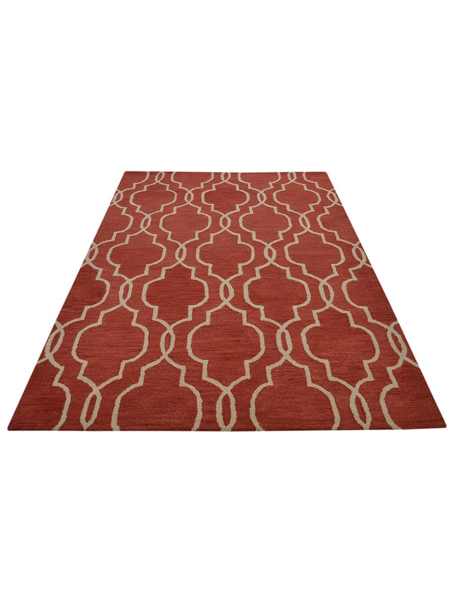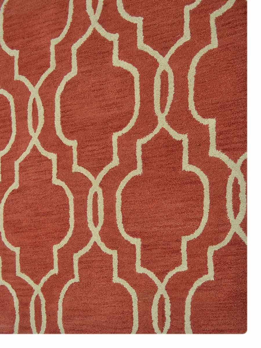 OPS Hand Tufted Wool Geometric Indoor Area Rug, Red Beige
