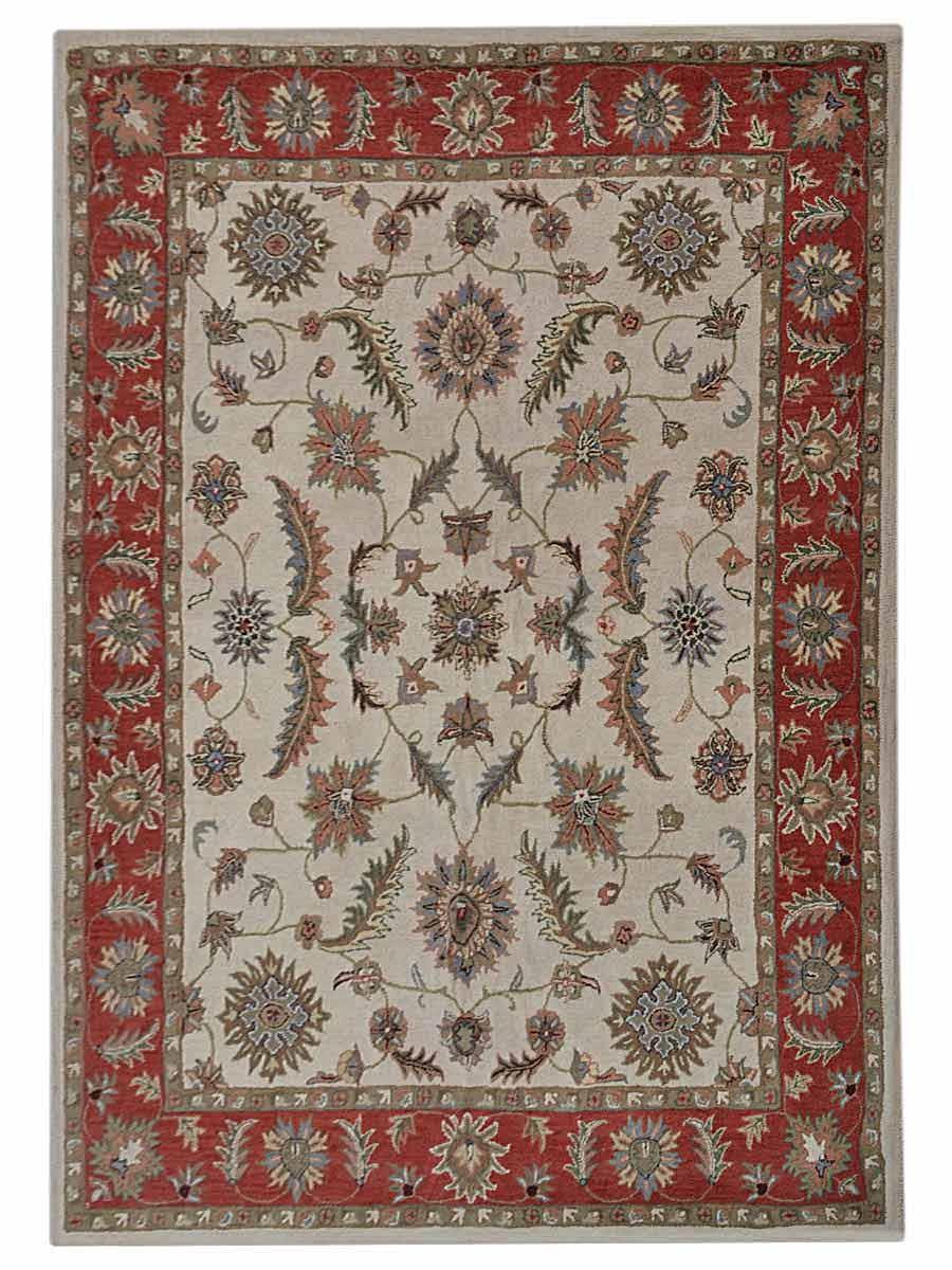 OPS Hand Tufted Wool Oriental Indoor Area Rug, Beige Red