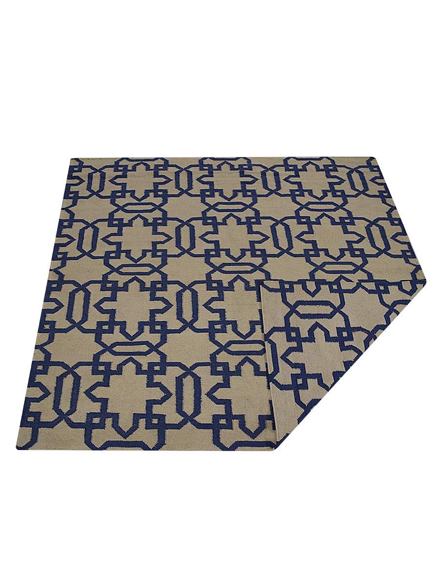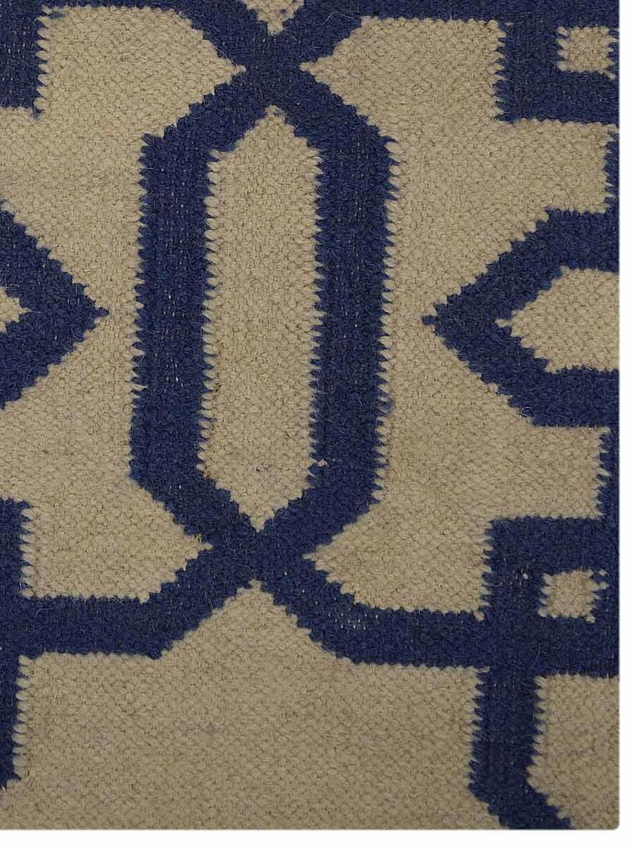 OPS Hand Woven Flat Weave Kilim Wool Contemporary Indoor Area Rug, Cream Blue