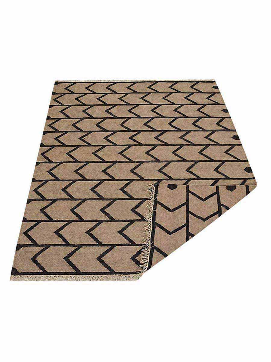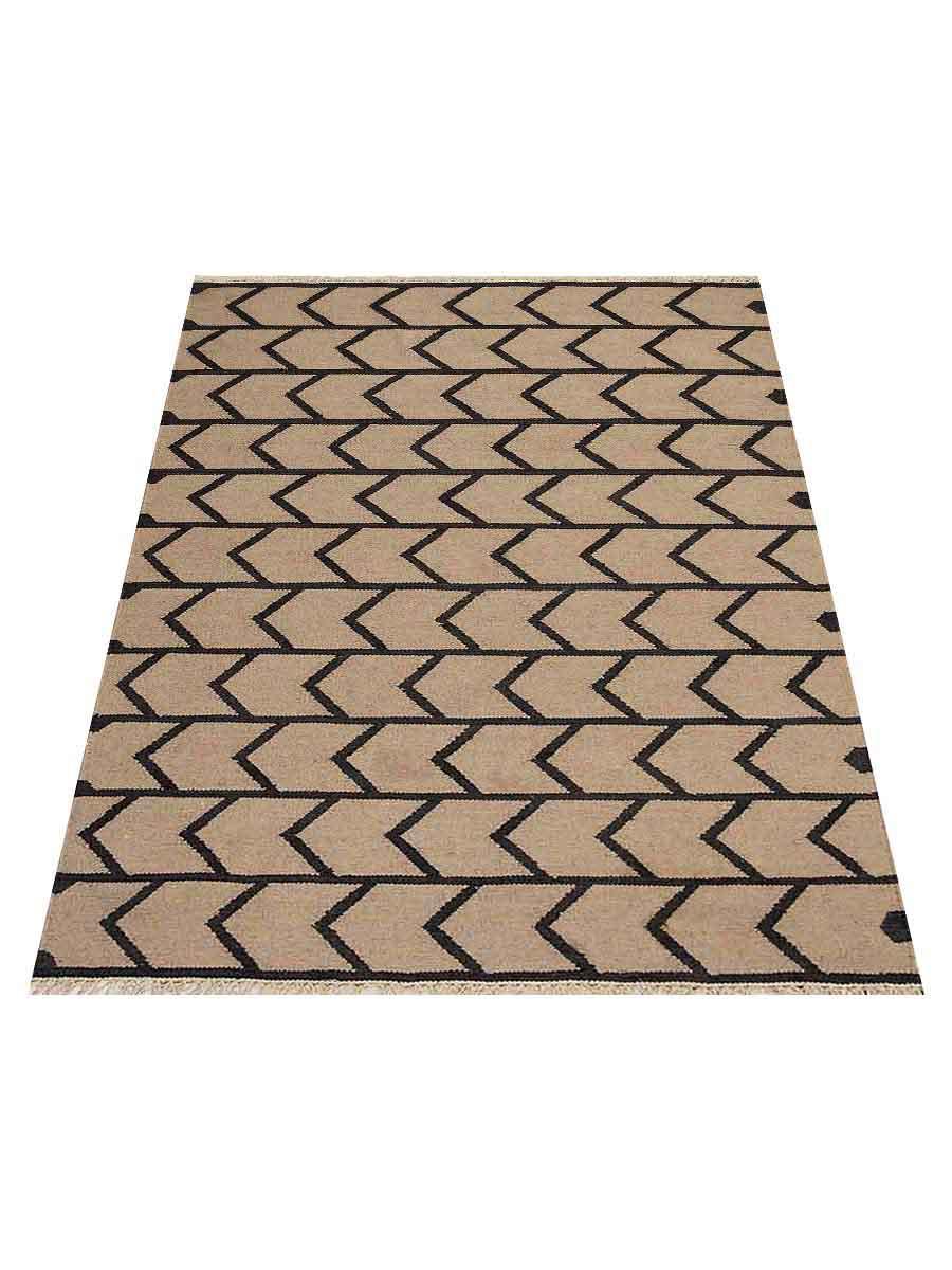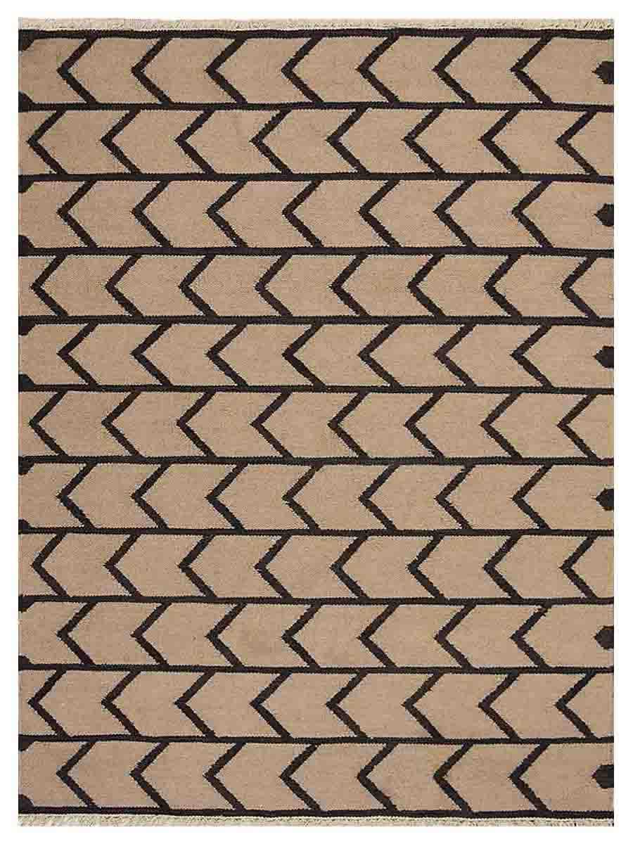 OPS Hand Woven Flat Weave Kilim Wool Contemporary Indoor Area Rug, Cream Charcoal