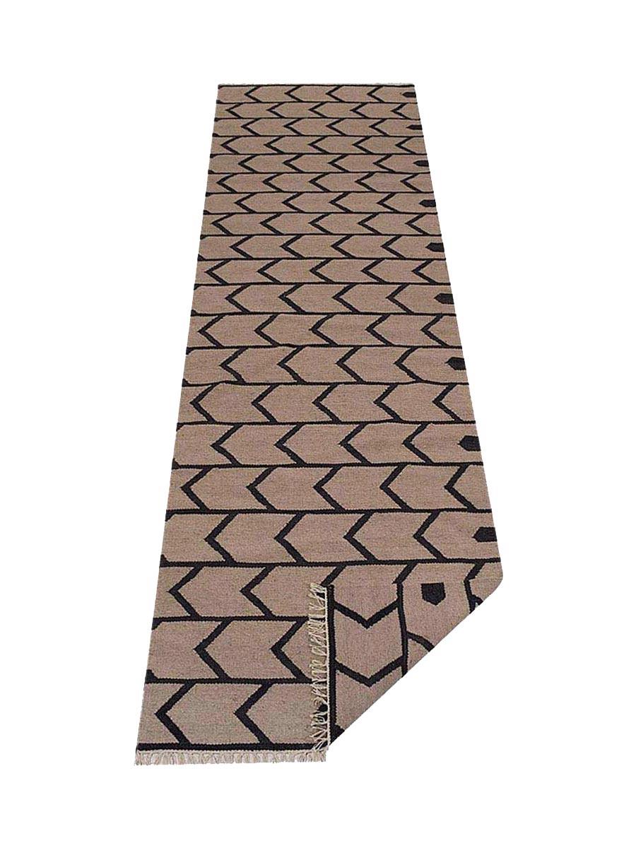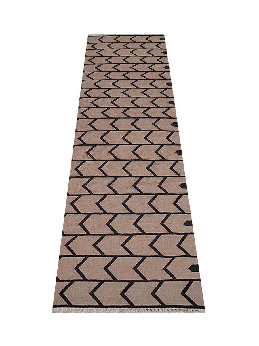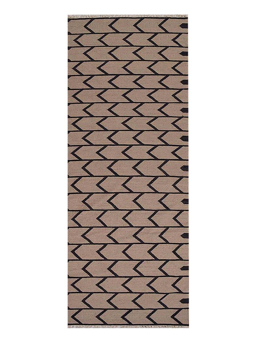 OPS Hand Woven Flat Weave Kilim Wool Contemporary Indoor Area Rug, Cream Charcoal