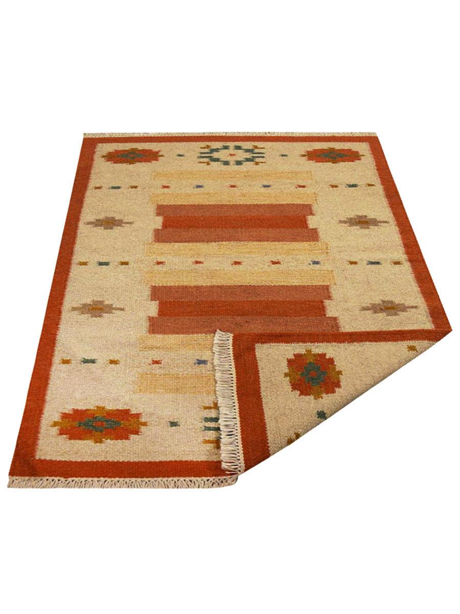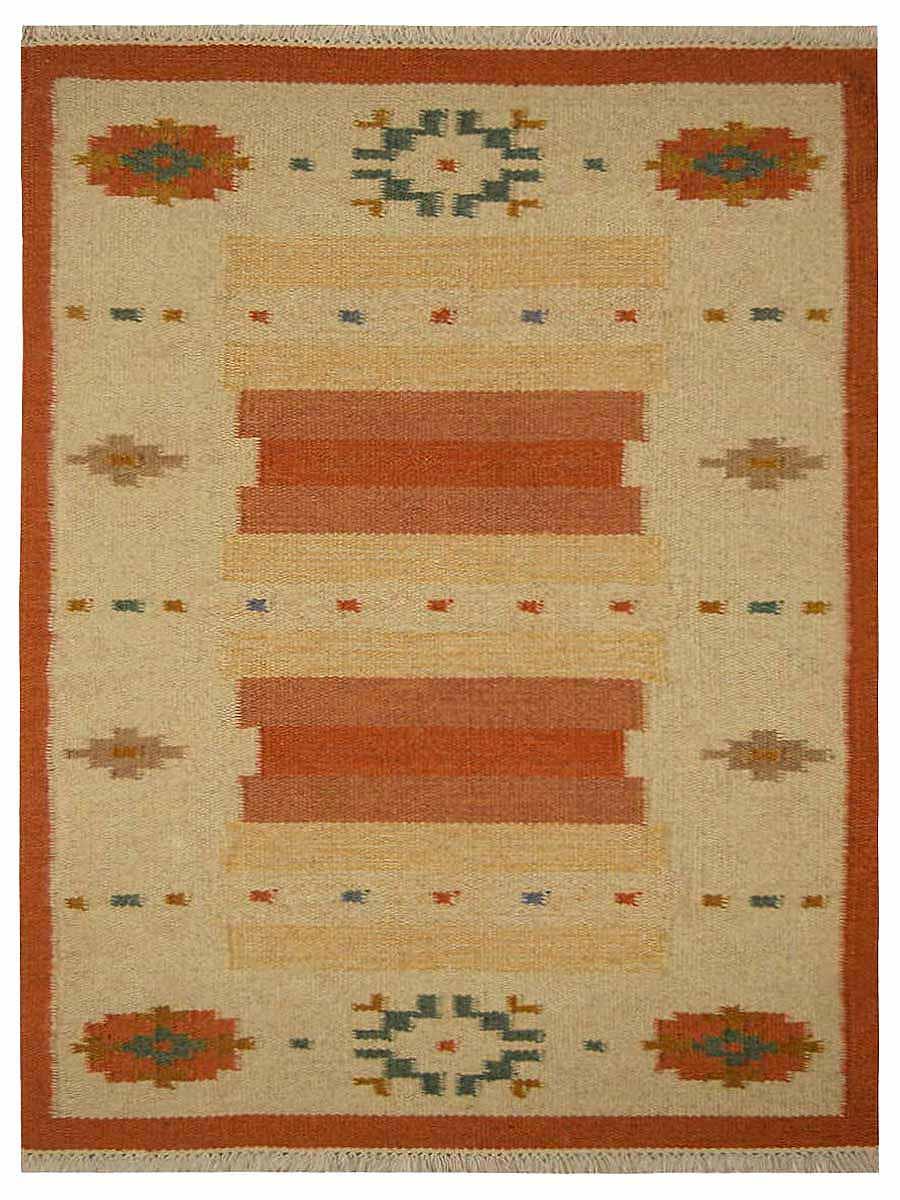 OPS Hand Woven Flat Weave Kilim Wool Contemporary Indoor Area Rug, White Rust