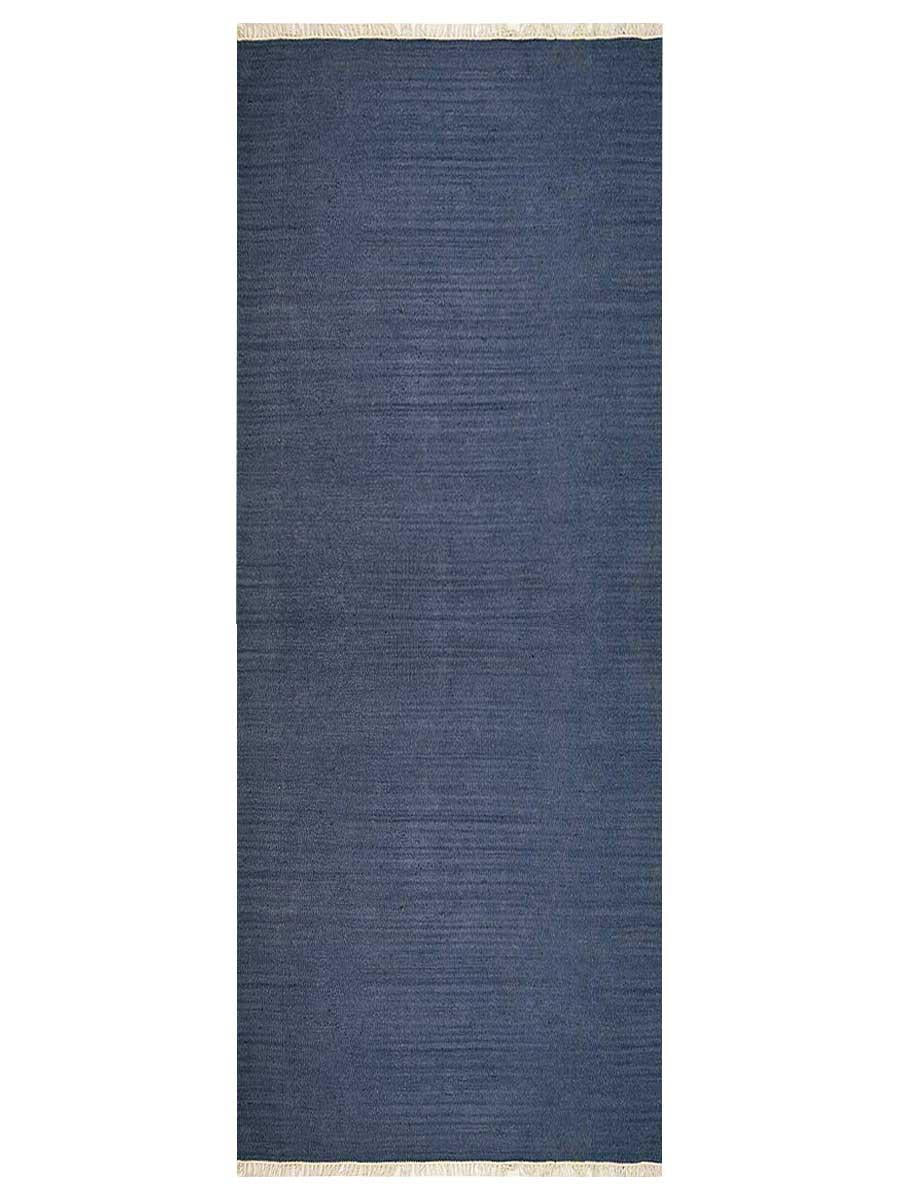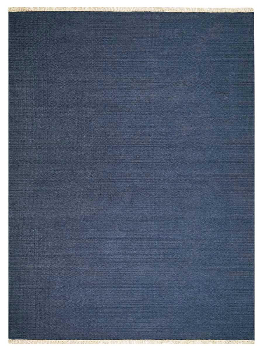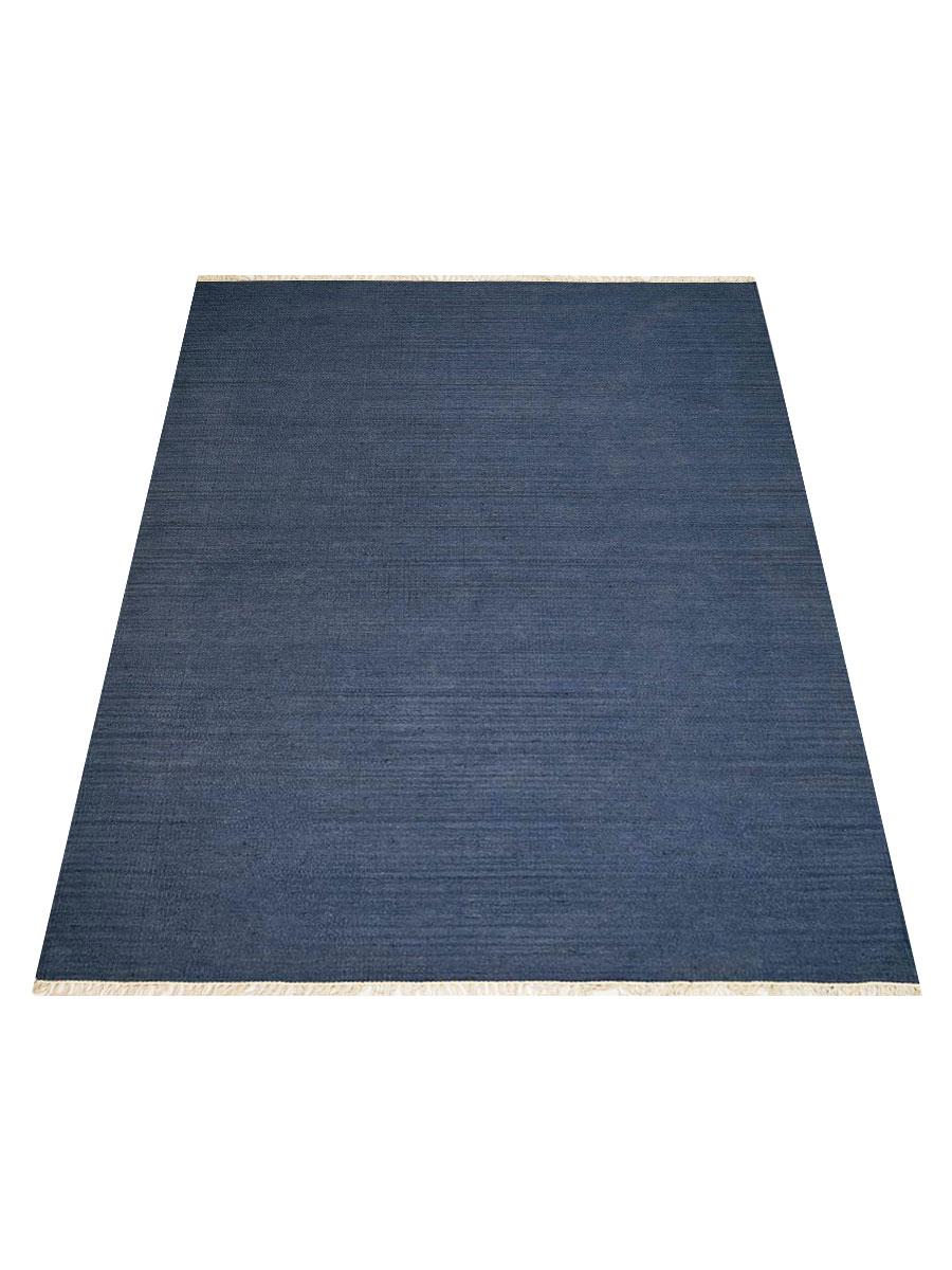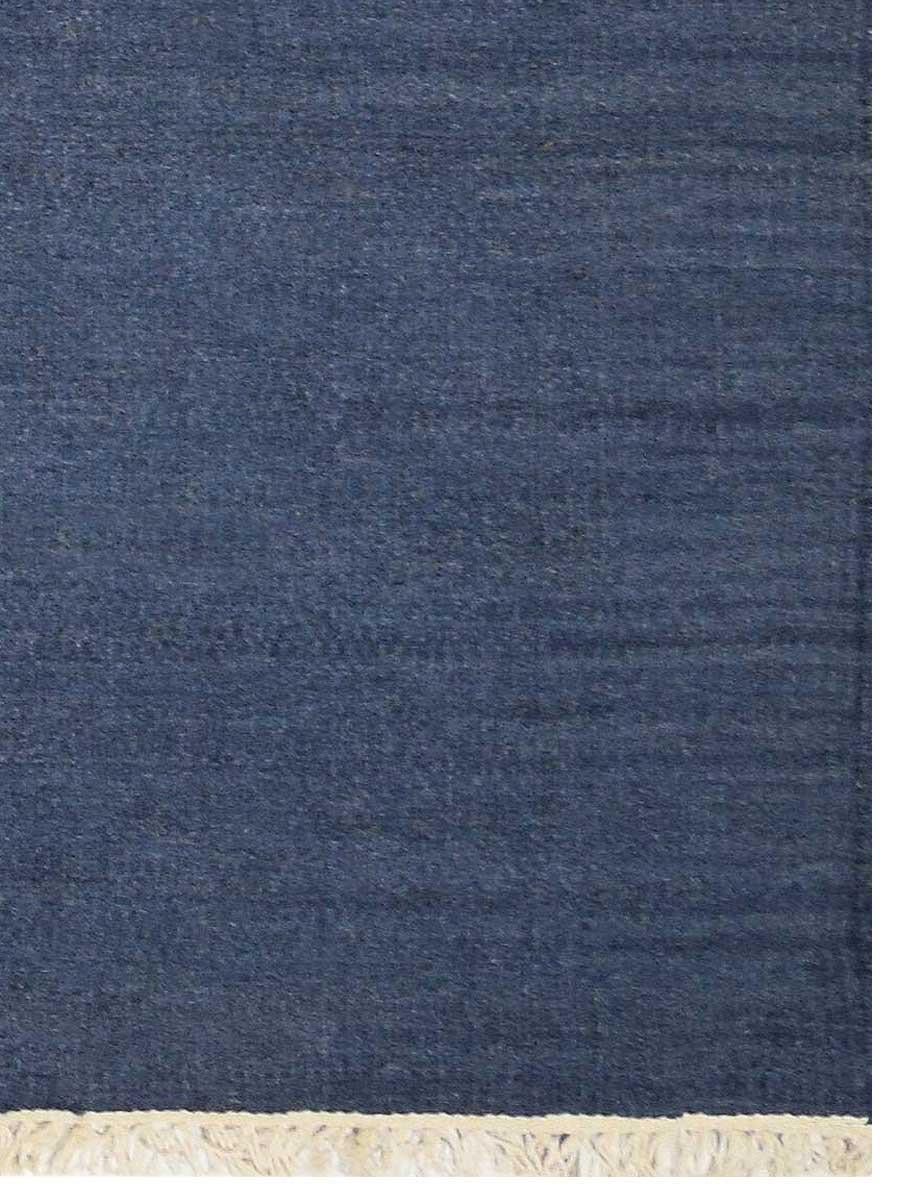 OPS Hand Woven Flat Weave Kilim Wool Solid Indoor Area Rug, Blue