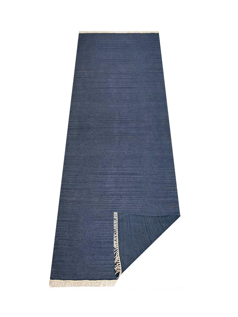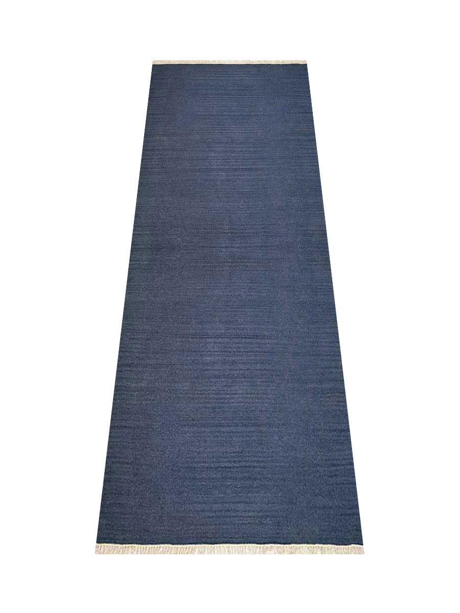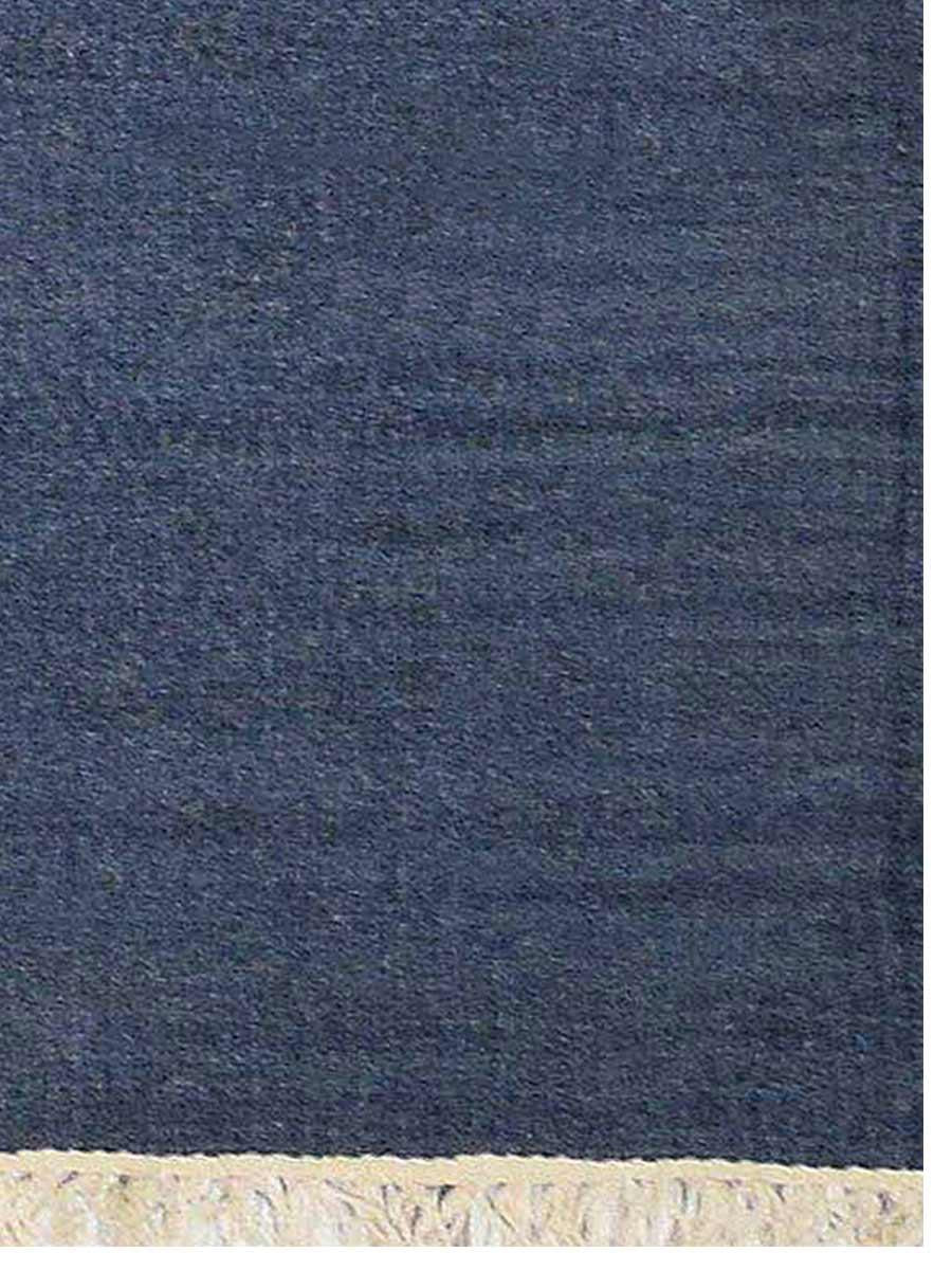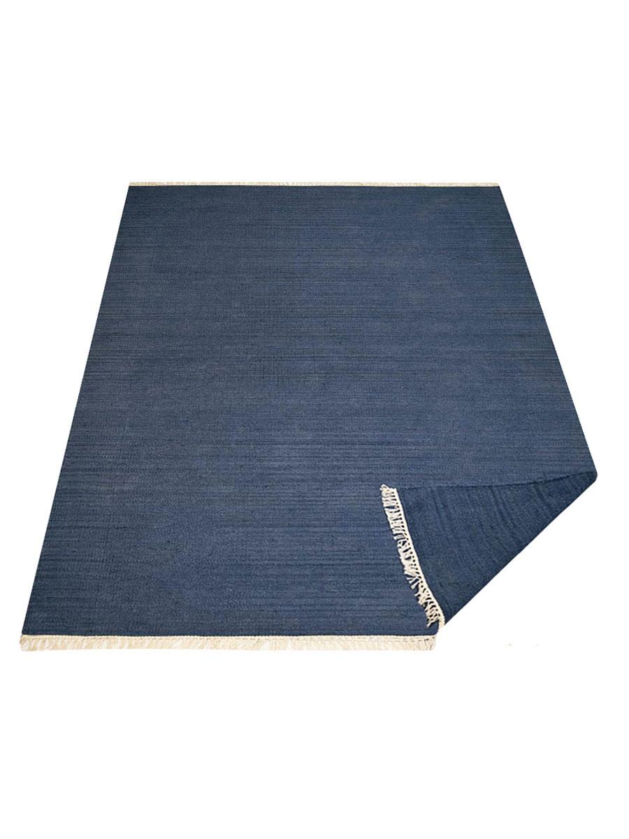OPS Hand Woven Flat Weave Kilim Wool Solid Indoor Area Rug, Blue