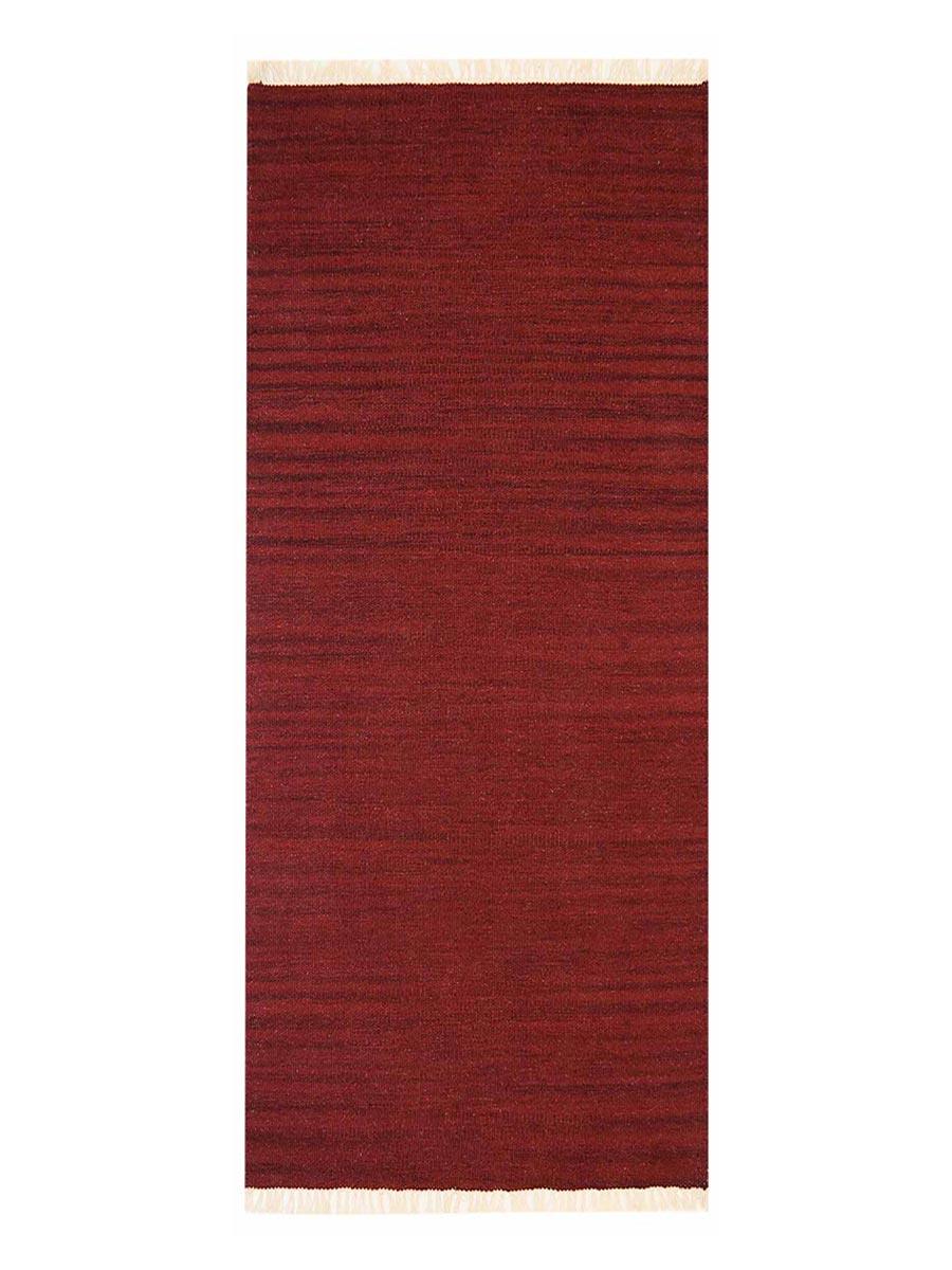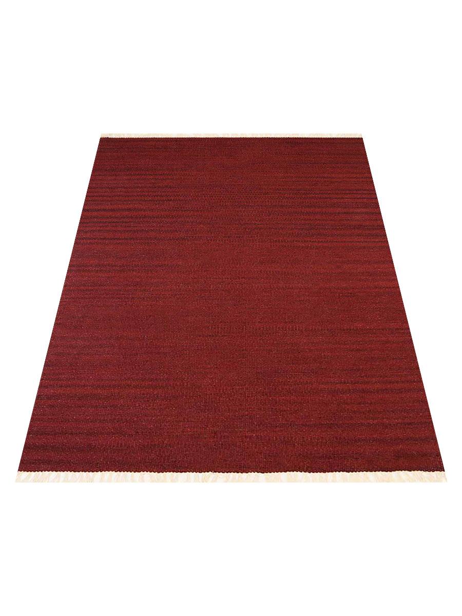 OPS Hand Woven Flat Weave Kilim Wool Solid Indoor Area Rug, Burgundy