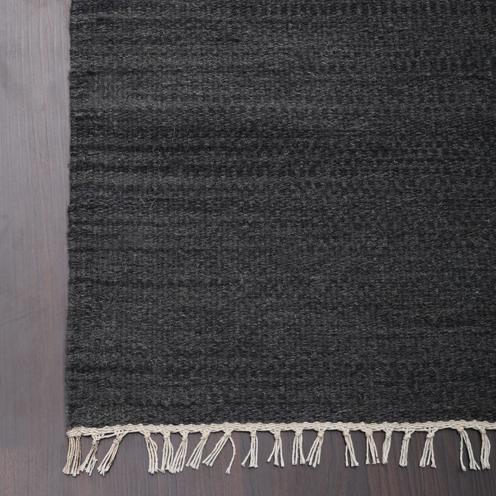 OPS Hand Woven Flat Weave Kilim Wool Solid Indoor Area Rug, Charcoal