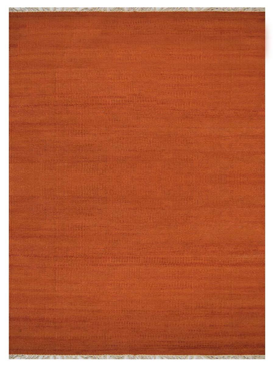 OPS Hand Woven Flat Weave Kilim Wool Solid Indoor Area Rug, Dark Orange